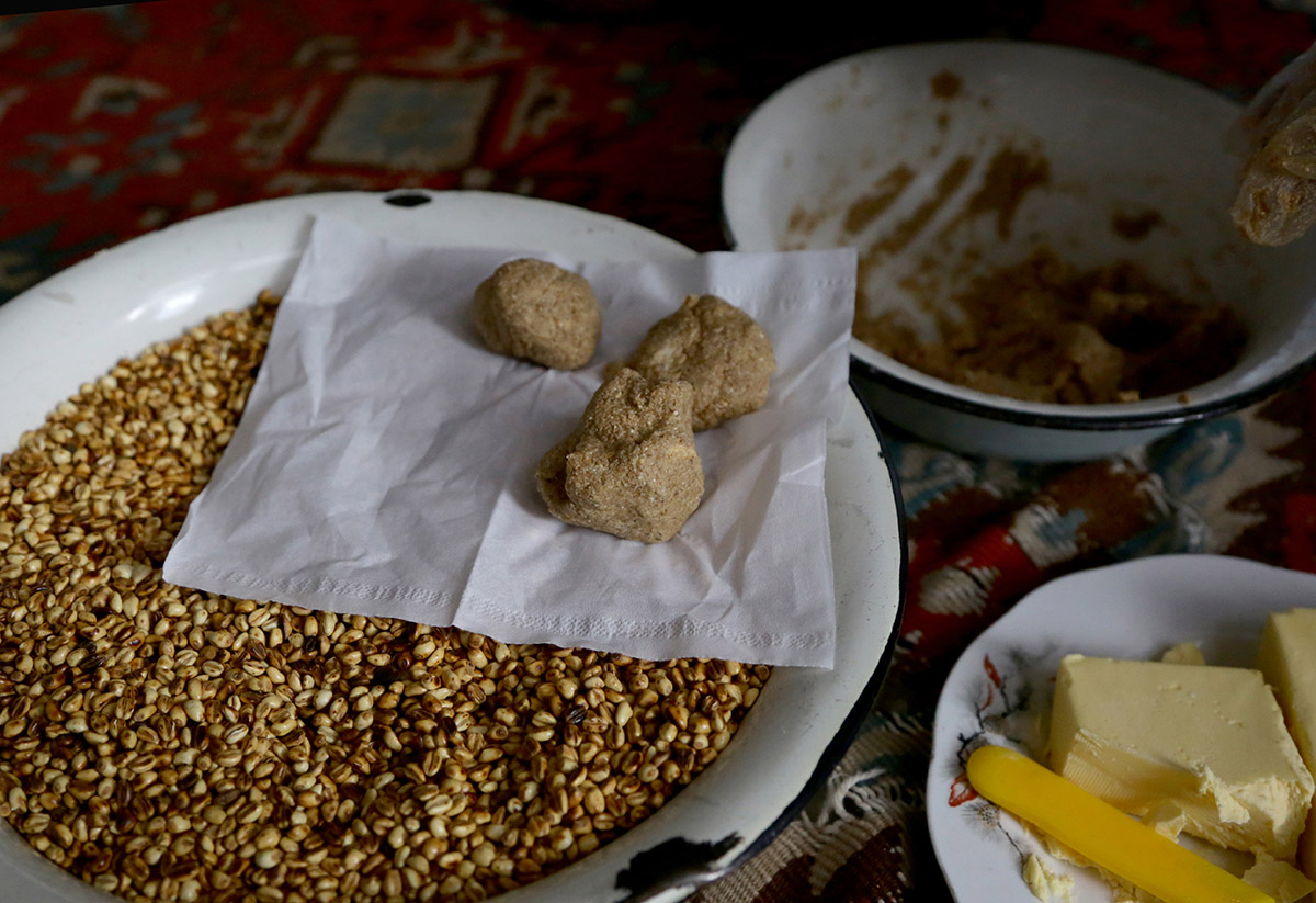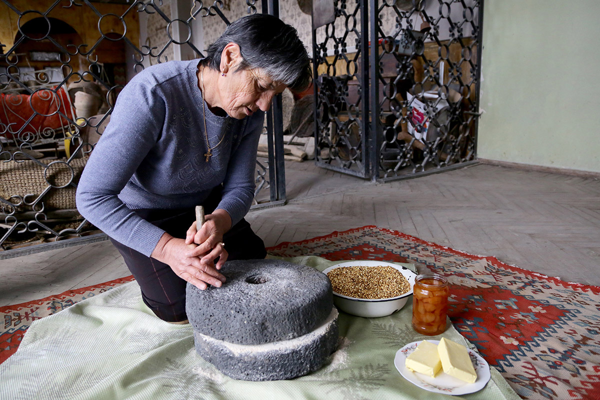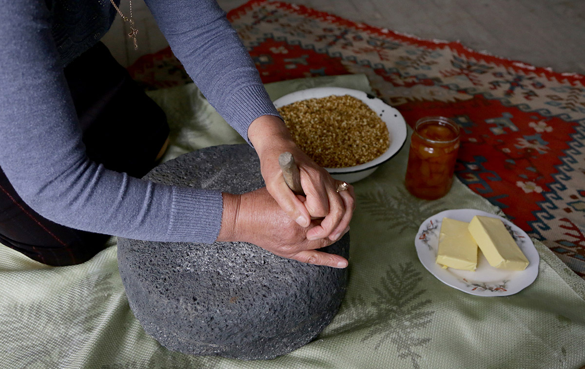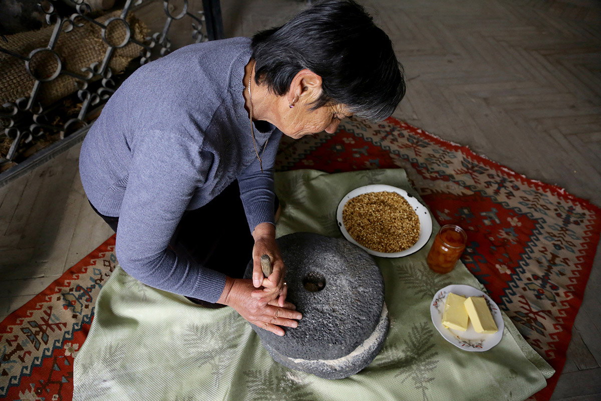 Գյուղի ավագ կանանց հետ միասին կբացահայտեք հացահատիկից փոխինձը ստանալու ձևերը, ժամանակակից վերափոխումները և դրանց ազգագրական նշանակությունը։ Ձեզ ցույց կտան փոխինձը այլ բաղադրիչներով խառնելու ձևը: Տեղացի կանանց ցուցումներով սեփական ձեռքերով կպատրասեք փոխինձի գնդիկներ կամ կզարդարեք քաղցրավենիքը։